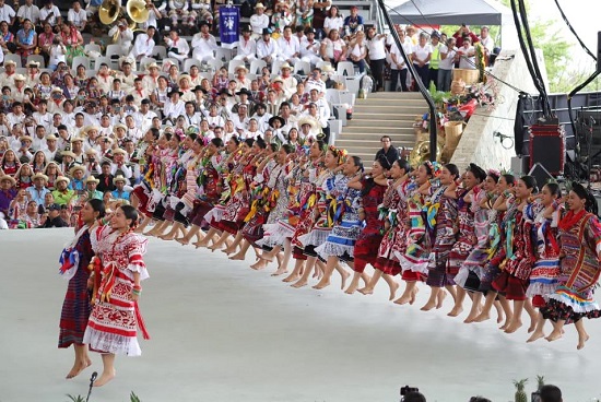 La cultura mazateca se hizo presente en la Rotonda de la Azucena con la delegación de San José Tenango, que presentó sus tradicionales sones y la mayordomía de la Virgen Pastora. La historia y vestimentas de Villa de San Blas Atempa fueron representadas por sus mujeres, portando coloridos huipiles, y sus hombres, llevando ramos de poleo.