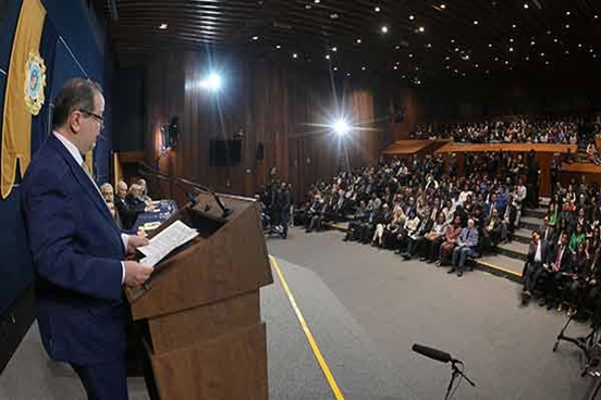 En el auditorio “Alfonso Caso”, el rector también señaló que se debe asegurar que las y los funcionarios judiciales cuenten con los saberes, habilidades y herramientas necesarias para ejercer su labor con autonomía, ética y profesionalismo, a fin de buscar que la justicia sea asequible, visible y entendible para todas y todos, ya que es un derecho humano inalienable.
