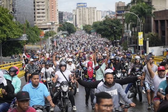 «¡Y va a caer, y va a caer, este gobierno va a caer!», gritaban manifestantes bajo la lluvia en la gigantesca barriada de Petare, la mayor de Caracas. «¡Que entregue el poder ya!», exclamaban otros.