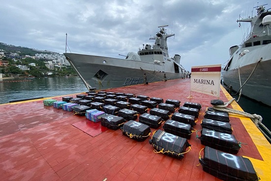 La Secretaría de Marina a través de la Armada de México en funciones de Guardia Costera, informa que, en días pasados, personal de la Décima Segunda Región Naval, logró el aseguramiento de 45 costalillas con un peso estimado de 1,500 (un mil quinientos) kilogramos de presunta cocaína, a aproximadamente 170 millas náuticas (135 kilómetros) al sur de Acapulco, Guerrero.