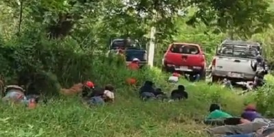 Pobladores de Chiapas se tiran al suelo para no ser alcanzados por las balas de criminales