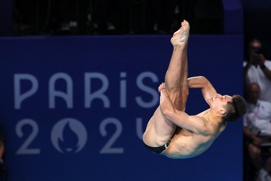 Desde el Centro Acuático Saint Denis, Osmar Olvera obtuvo 81.60, 68.25, 66.60, 72.15, 87.40 y 87.75 en las seis rondas de salto en las semifinales, Zongyuan Wang de China fue el mejor posicionado en esta prueba registrando un total de 537.85 puntos.