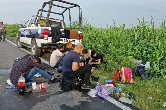 Al lugar arribaron cuerpos de emergencia y elementos de seguridad, al llegar a la zona del incidente, detectaron que los pasajeros de la camioneta eran migrantes de origen chino y árabe, por lo que procedieron a su detención.