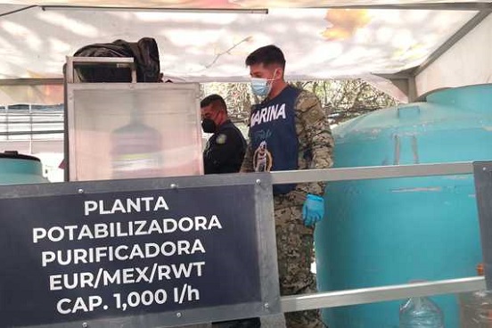 Con la finalidad de mitigar el estrés hídrico y la mala calidad del agua potable en cuatro alcaldías de la Ciudad de México, la Marina-Armada de México (Semar) puso en marcha el Plan Marina en su etapa de apoyo a la población con la purificación de agua potable para consumo humano.