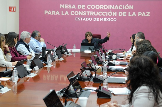 TOLUCA, Estado de México.- La Gobernadora del Estado de México Delfina Gómez Álvarez encabezó la Mesa de Coordinación para la Construcción de la Paz, donde supervisó la estrategia en materia de género implementada en los 125 municipios mexiquenses.