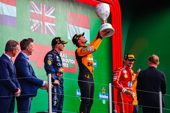 A pesar de que en la largada el protagonista fue Max Verstappen, quien salió mucho mejor que Norris y lo superó con claridad, el piloto neerlandés no pudo lucir dominador ante su público, tal como lo había hecho desde 2021, cuando la carrera en el Circuito de Zandvoort regresó al calendario del ‘Gran Circo’.