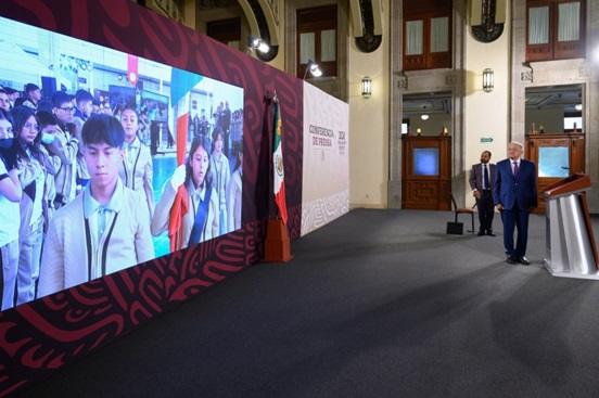 En conferencia de prensa matutina también felicitó a las y los maestros de todo el país durante un enlace en vivo con la comunidad de la Escuela Secundaria Técnica No. 6 Sor Juana Inés de la Cruz en la alcaldía Cuauhtémoc de la Ciudad de México.