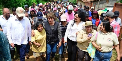 Gobernadora Delfina Gómez recorre Tejupilco; anuncia plan de reubicación de viviendas dañadas por el desbordamiento del Río Rincón de López