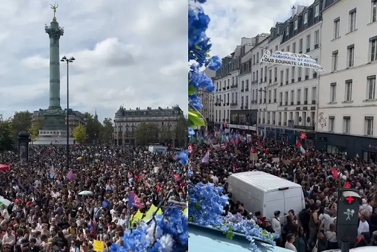 La policía dijo que 110 mil personas salieron a las calles, 26 mil personas en París, pero los organizadores afirmaron que 300 mil personas participaron en las más de 150 manifestaciones en toda Francia.