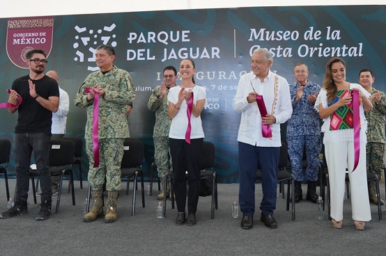 Acompañado por la presidenta electa, Claudia Sheinbaum Pardo, el primer mandatario también inauguró el Museo de la Costa Oriental, que forma parte de las atracciones del parque. Resaltó que se trata de uno de los museos más bellos del mundo por el trabajo de mujeres y hombres arqueólogos, restauradores y trabajadores. También reconoció la labor de ingenieros militares por haber construido en 15 meses el Aeropuerto Internacional de Tulum.