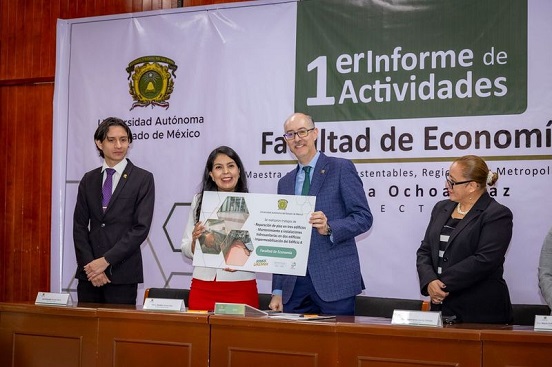En el marco de la presentación del primer informe anual de actividades de la directora de la Facultad de Economía de la Universidad Autónoma del Estado de México (UAEMéx), Sandra Ochoa Díaz, se destacaron los logros y avances que posicionan a este espacio académico como un referente en la formación de profesionales en las ciencias económicas. Durante el evento, que tuvo lugar en el Auditorio “Carlos Marx” de la Facultad, el rector de la UAEMéx, Carlos Eduardo Barrera Díaz, subrayó la importancia de las ciencias económicas para enfrentar los retos actuales y futuros de la sociedad.