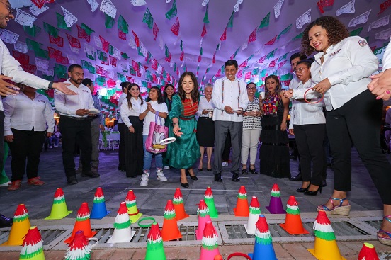 También, junto a las niñas y niños se divirtieron con los juegos tradicionales que se colocaron como parte de la riqueza cultural que se transmite de generación en generación.