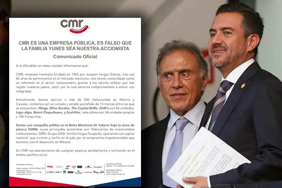Luego de que surgieran rumores de que la familia Yunes fuera accionista de la Corporación Mexicana de Restaurantes (CMR), la firma desmintió esta versión.