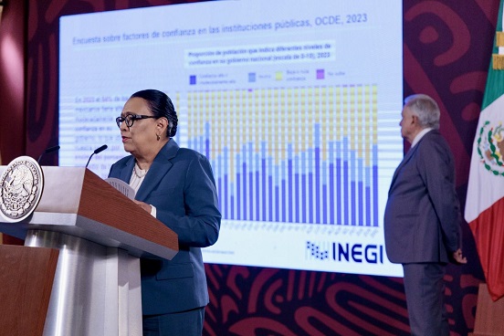 10. Según la encuesta de 2023 sobre factores de confianza en las instituciones públicas de la Organización para la Cooperación y el Desarrollo Económico, (OCDE), realizada en 30 países, el 54 por ciento de los mexicanos tiene alta o moderadamente alta confianza en su gobierno, lo que ubica a México por encima del 39 por ciento promedio de la OCDE y sólo por debajo de Suiza y Luxemburgo.