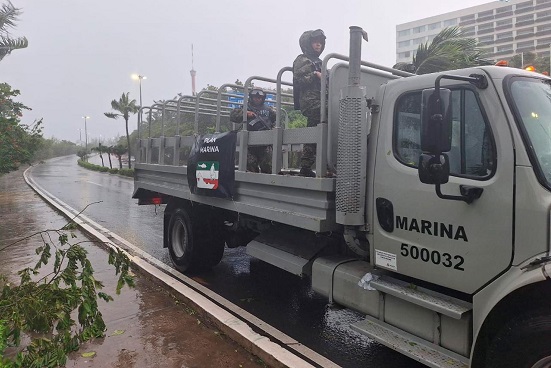 Por lo anterior, en Quintana Roo se encuentran desplegados 961 elementos navales, con apoyo de 79 vehículos, dos aeronaves y 24 embarcaciones, así como tres cocinas móviles; llevando a cabo recorridos terrestres, dentro de la jurisdicción de los Mandos Navales, con el fin de auxiliar a la población realizando diversos apoyos, como el cruce de personas en ríos, remoción de vehículos varados y árboles, así como perifoneo.