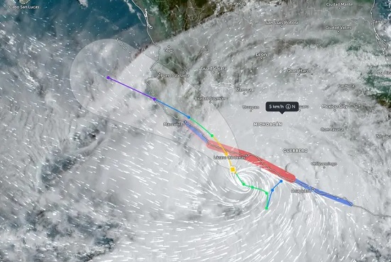 John, como huracán categoría 1, podría tocar tierra en las costas de Michoacán y Colima, entre los municipios de Aquila y Manzanillo, durante la noche de este jueves o en las primeras horas del viernes, además no se descarta que se convierta en categoría 2; conoce aquí su trayectoria en vivo hoy 26 de septiembre de 2024.