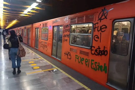 En las fotografías se aprecia que las fachadas de los vagones se pintaron símbolos y frases como: «Fue el estado» y «Narco Gobierno».