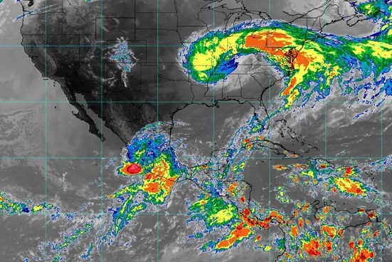Su amplia circulación generará lluvias puntuales extraordinarias, superiores a 250 mm, en Colima, Michoacán y Guerrero; así como lluvias puntuales torrenciales, de 150 a 250 mm, en Jalisco y Oaxaca. Además, se refuerza la probabilidad de lluvias fuertes a muy fuertes en el centro y norte del país,