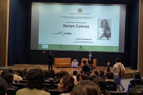 La presentación contó con la presencia de figuras destacadas de la Universidad Autónoma del Estado de México (UAEMéx), como la secretaria de Administración, Eréndira Fierro Moreno; la Coordinadora Institucional de Equidad de Género, Alejandra Carmona Castañeda; y el encargado del despacho de la dirección de la Escuela de Artes Escénicas, Leoncio Raúl León Mondragón, quienes, junto al estudiantado de diversas facultades, se unieron para escuchar el testimonio de Kenya Cuevas, activista, defensora de derechos humanos y directora y fundadora de Casa de las Muñecas Tiresias A.C.