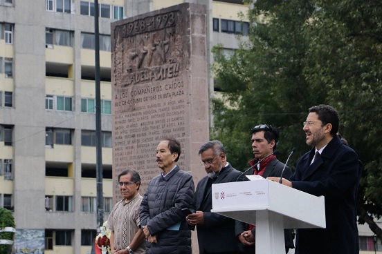 Destacó las acciones realizadas durante su gestión como Jefe de Gobierno para rendir homenaje a las y los estudiantes que perdieron la vida durante este movimiento político y social, como la restauración de la Estela de Tlatelolco, la cual contó con una inversión de 335 mil pesos.