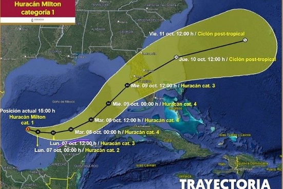 La tormenta tropical Milton, que se dirige hacia el estado de Florida, se convirtió en un huracán de categoría 1 (de 5), anunció el domingo el Centro de Huracanes de Estados Unidos (NHC).