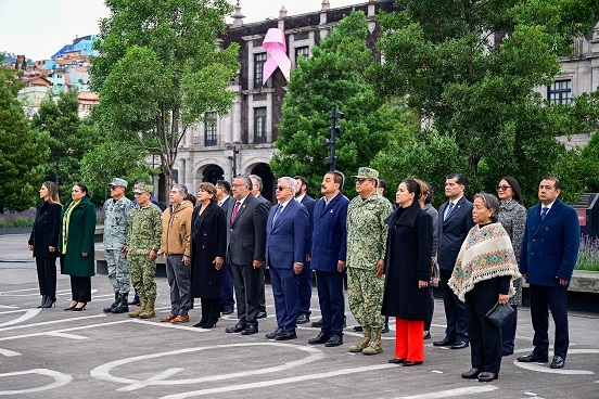 TOLUCA, Estado de México.- En un acto de civismo y patriotismo, la Gobernadora del Estado de México, Delfina Gómez Álvarez encabezó durante las primeras horas de este lunes la ceremonia de izamiento y honores al lábaro patrio en la Plaza de los Mártires, en la ciudad de Toluca.