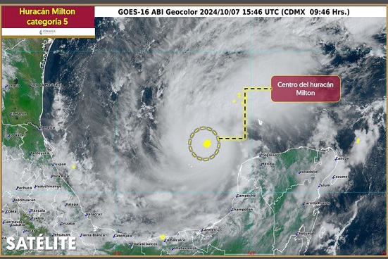El huracán Milton alcanzó el nivel 5 mientra se mueve en el Golfo de México y se acerca a la Península de Yucatán. Hasta ahora los pronósticos indica que el ciclón tropical no tocará tierra en costas mexicanas, sin embargo, sus bandas nubosas sí impactarán territorio nacional.