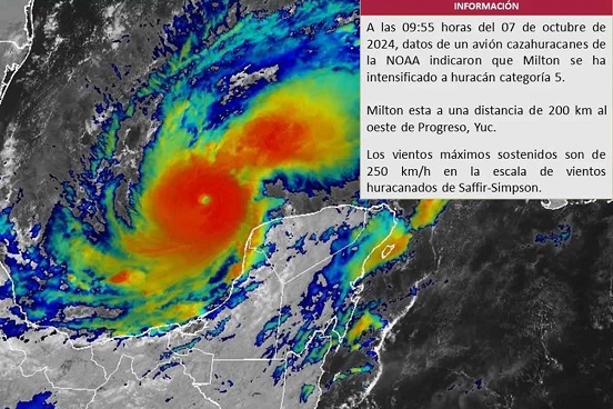 El Servicio Meteorológico Nacional (SMN) informó que Milton se ha intensificado a huracán categoría 5, por lo que se insistió en tomar precauciones.