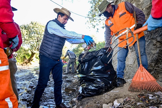 Toluca avanza en la recolección de residuos y la Reconciliación con el medio ambiente, por lo que en seguimiento a la iniciativa Limpiemos Nuestro EdoMéx, impulsada por la gobernadora Delfina Gómez Álvarez, se realizaron labores de limpieza en El Refugio, Tlacotepec.