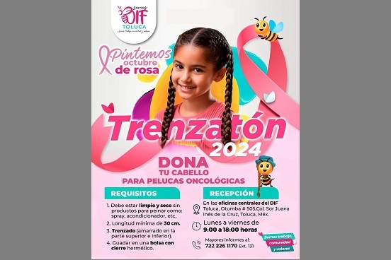 Con más de 100 trenzas recolectadas como parte de la campaña Trenzatón 2024, el Sistema Municipal DIF Toluca en colaboración con la Asociación Fundación Amoxkalli, confeccionarán pelucas oncológicas que serán entregadas a personas que han perdido su cabello debido a tratamientos contra el cáncer.