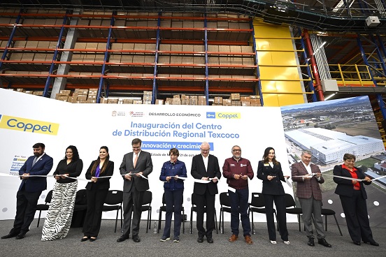 TEXCOCO, Estado de México.- Con una inversión de más de mil 200 millones de pesos y la generación de mil empleos formales, la Gobernadora del Estado de México, Delfina Gómez Álvarez, y Agustín Coppel Luken, Director General de Grupo Coppel, inauguraron el Centro de Distribución de esta empresa en el municipio de Texcoco, el cual es su mayor CEDIS en el país, equipado con la última tecnología del sector.