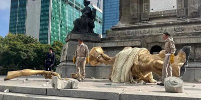 Así cayó el Ángel de la Independencia en CDMX, ¡el de utilería!