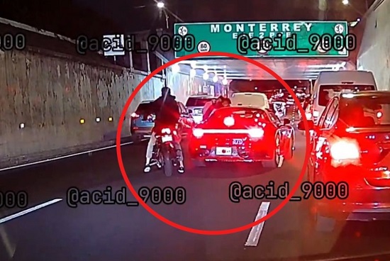 Fueron tres sujetos armados que iban a bordo de una motocicleta, quienes se le emparejaron al conductor del Porsche y presuntamente lo asaltaron, aunque en el video no se alcanza a observar si los delincuentes le quitaron algo.