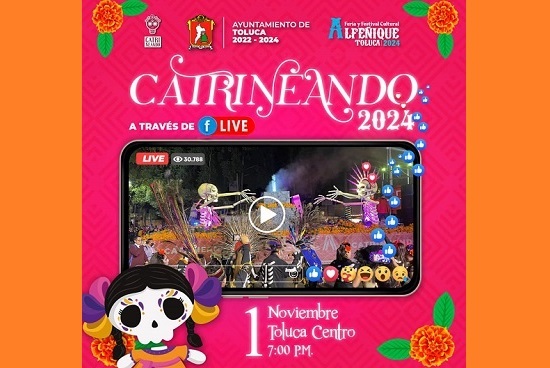 La Feria y Festival Cultural Alfeñique2024 sigue conquistando a locales y visitantes, quienes esta noche saldrán vestidos de catrinas y catrines para hacer suya la ciudad y, a fin de que más personas puedan disfrutar de esta celebración, el gobierno municipal hará una trasmisión a través de las redes sociales del Ayuntamiento de Toluca, a partir de las 19:00 horas.