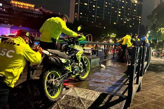 Los uniformados de Tránsito y de Operación Policial, aseguraron 177 motocicletas en distintos puntos del Paseo de la Reforma, en la colonia Juárez, de la alcaldía Cuauhtémoc, las cuales fueron llevadas a un depósito vehicular; además, 14 personas quedaron a disposición del Juez Cívico quien determinará la sanción correspondiente, por infringir el Reglamento de Tránsito.