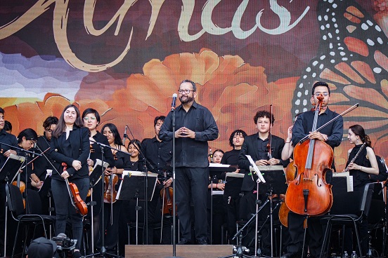 La Orquesta del Conservatorio de Música del Estado de México (COMEM) deleitó al público con piezas como “El Andariego”, “Llorona”, “Adoro”, “Sabor a mí”, “Veracruz”, “Coincidir”, “Bésame mucho” y el “Huapango de Moncayo”.