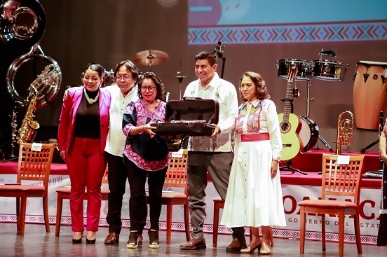 Teniendo como sede al Teatro Macedonio Alcalá, se hizo la primera entrega de instrumentos musicales que beneficiará a 48 comunidades de la Sierra de Juárez, Valles Centrales, Mixteca, Istmo, Sierra Sur, Papaloapan, Sierra de Flores Magón y Costa. En total son 365 instrumentos por un monto superior a los 8.7 millones de pesos.