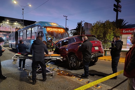 COACALCO, Estado de México.- La Secretaría de Movilidad del Gobierno del Estado de México informa que el impacto de una camioneta con una unidad del Mexibús Línea 2 Lechería-Las Américas, dejó como saldo nueve personas lesionadas y una fallecida.