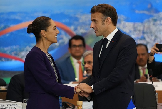La presidenta Claudia Sheinbaum se reunió con su homólogo de Francia, Emmanuel Macron, en uno de los primeros encuentros bilaterales en el marco de la Cumbre de Líderes del G20 que se realiza en Río de Janeiro, Brasil, en la que el anfitrión, Lula da Silva, llamó a todos los presentes a una alianza global contra la pobreza.