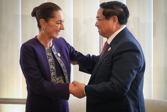 La presidenta Claudia Sheinbaum acordó con el primer ministro de Vietnam, Pham Minh Chinh, estrechar relaciones entre ambos países.