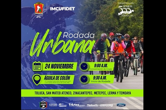 El Instituto Municipal de Cultura Física y Deporte de Toluca (IMCUFIDET) invita a todos los amantes del ciclismo a participar en la Rodada Urbana, un evento pensado para disfrutar de la ciudad y el ejercicio en un ambiente saludable, el próximo domingo 24 de noviembre a las 9:00 horas, en la Glorieta del Águila, ubicada en Paseo Colón.