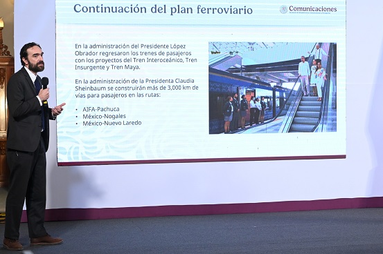 Con fecha de 1 de octubre, la señora presidenta nos instruyó para que continuaremos en estrecha coordinación con la SICT y con la agencia reguladora de transporte ferroviario mediante la construcción de diversas vías férreas», explicó.