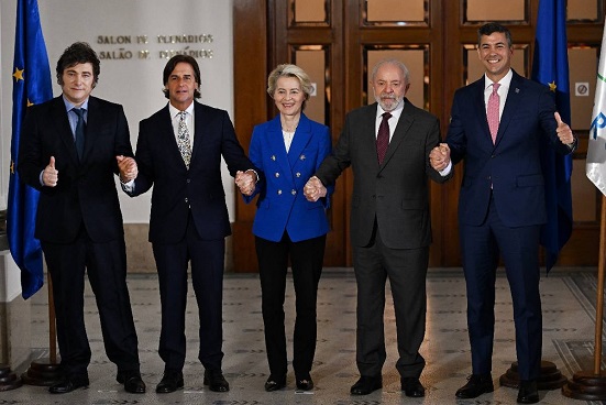 «Concluimos las negociaciones para el acuerdo Unión Europea-Mercosur. Es el comienzo de una nueva historia», dijo la presidenta de la Comisión Europea, Ursula von der Leyen, que hizo una declaración a la prensa junto a los presidentes de Argentina, Brasil, Paraguay y Uruguay para anunciar el entendimiento después de 25 años de tratativas. «Ahora espero discutirlo con los países europeos», agregó en referencia a la necesidad de que este compromiso sea refrendado por una mayoría de miembros de la UE para entrar en vigencia.