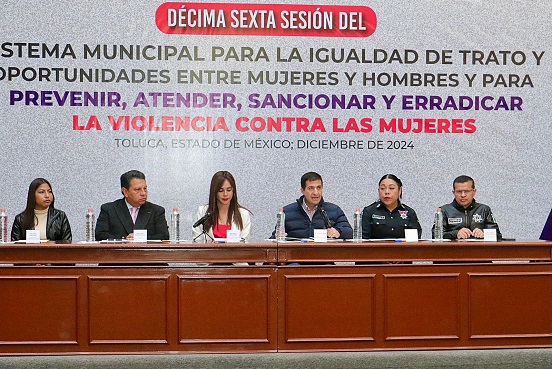 Durante la Sesión del Sistema Municipal para la Igualdad de Trato y Oportunidades entre Mujeres y Hombres, y para Prevenir, Atender, Sancionar y Erradicar la Violencia Contra las Mujeres; el Presidente Municipal de Toluca, Juan Maccise, hizo un llamado a reflexionar sobre los avances alcanzados y los retos pendientes en la lucha por la igualdad de género y la erradicación de la violencia contra las mujeres.