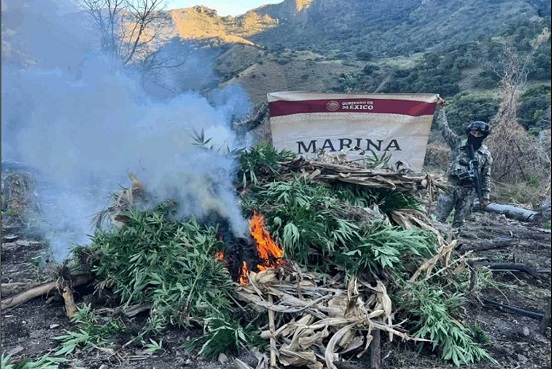 Derivado de trabajos de inteligencia, personal de la Secretaría de Marina-Armada de México (Semar) en dos acciones distintas, localizó dos laboratorios clandestinos y erradicó cuatro plantíos de marihuana en Nayarit y Sinaloa.