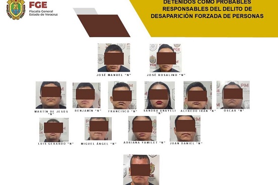 También fueron detenidos los policías Martín de Jesús N, Benjamín, Francisco, Sandra Anayeli, Alfredo Irán, Oscar, Luis Gerardo, Miguel Ángel, Adriana Yamilet y Juan Daniel N, todos ellos en agravio de dos víctimas en la región de Cosamaloapan, por lo que fueron trasladados a ese distrito judicial.