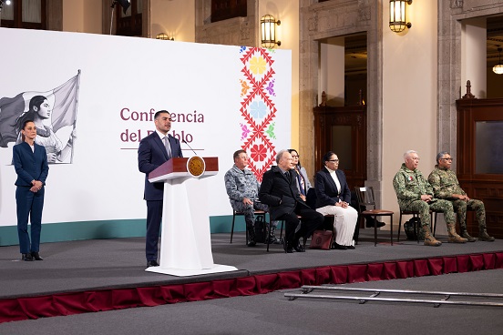 En la conferencia: “Las mañaneras del pueblo”, acompañaron a la Presidenta de México, el fiscal general de la República, Alejandro Gertz Manero; el secretario de la Defensa Nacional, general Ricardo Trevilla Trejo; el secretario de Marina, almirante Raymundo Pedro Morales Ángeles; el comandante de la Guardia Nacional, general Hernán Cortés Hernández, y la subsecretaria de Prevención del Delito, Esthela Damián Peralta.