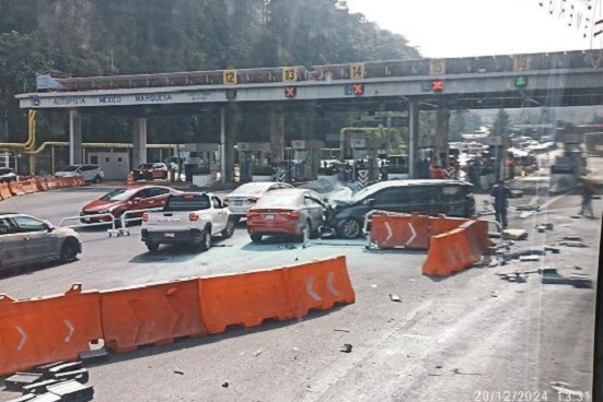 Tres vehículos, una caseta de cobro y parte del muro de contención resultaron dañados por un tráiler que se quedó sin frenos en la caseta la venta en el kilómetro 24 de la Autopista México-Toluca.