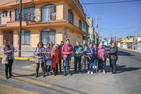 Posteriormente, en Santa Ana Tlapaltitlán, se realizó la inauguración de la rehabilitación con mezcla asfáltica de la calle Nezahualcóyotl, de Ignacio Zaragoza a Salvador Díaz Mirón, superficie de 2 mil 953.40 metros cuadrados.