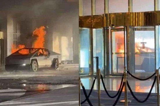 Los videos que circulan en redes sociales muestran a la Tesla Cybertruck envuelto momentos antes de explotar con fuerza y ser envuelta en llamas, mientras las sirenas de emergencia se escuchan en el fondo.